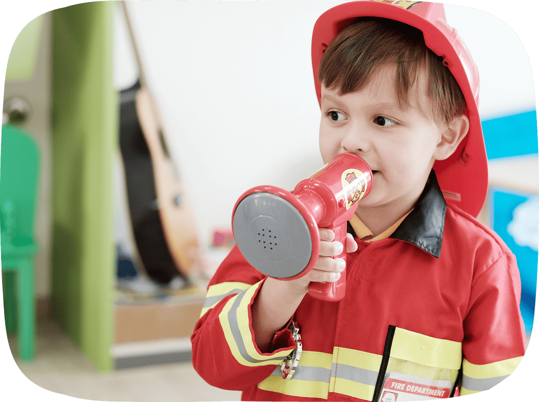 Hats on. Campers will learn about community helpers like firefighters and police officers while practicing safety and teamwork.